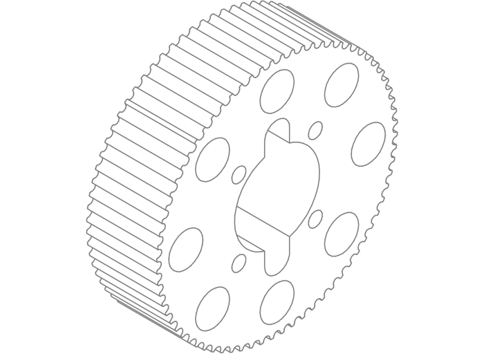 Компания обратилась к нам с задачей: нужен был зубчатый шкив 72 5М 33 (72 — количество зубьев, 5М — профиль зуба, 33 — ширина рабочей поверхности, мм) для работы в связке с шариково-винтовой передачей. Изготовили деталь из заготовки по индивидуальным параметрам заказчика.